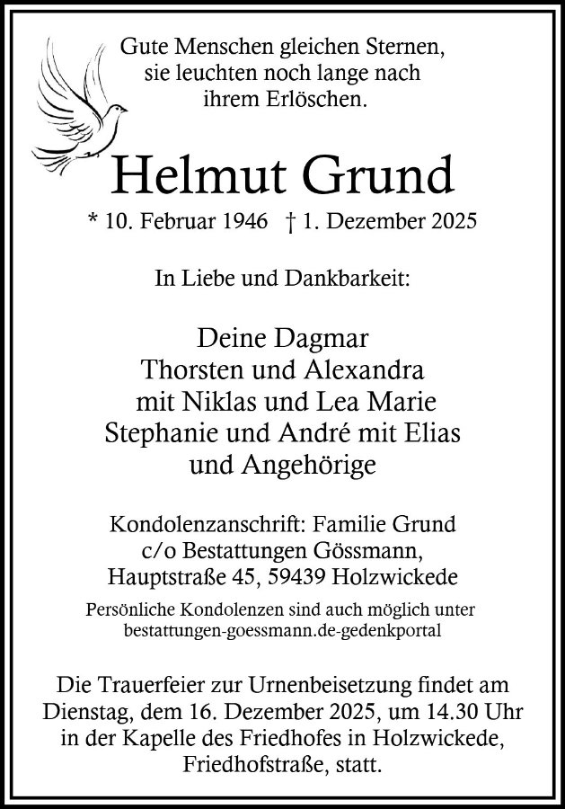 gestorben am 1. Dezember 2025 in Holzwickede
